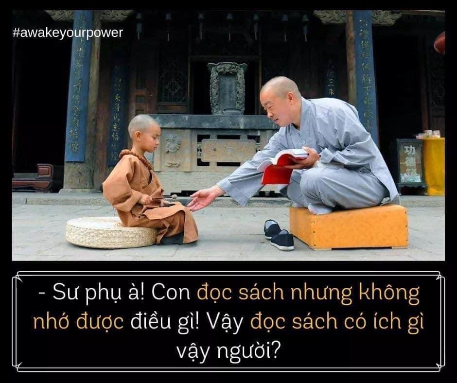 "Chuyện kể rằng, tại một ngôi chùa trên núi, có một vị sư phụ đều thức dậy sớm ngồi vào bàn để đọc sách - dù những cuốn sách này đã cũ kỹ. Tiểu hòa thượng bên cạnh sư phụ thấy vậy, cũng cố gắng bắt chước sư phụ mình đọc sách.